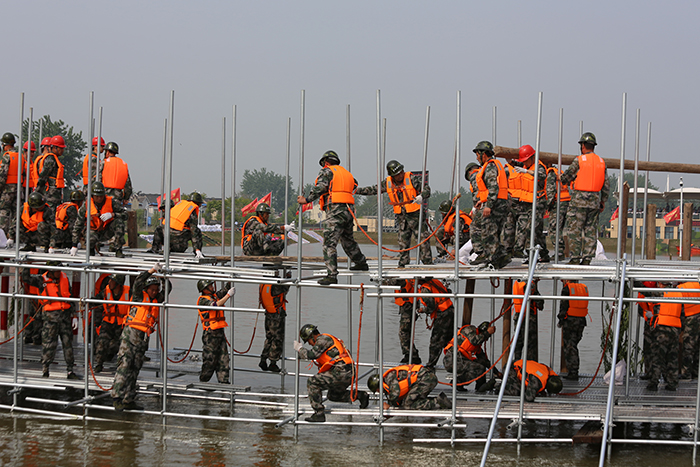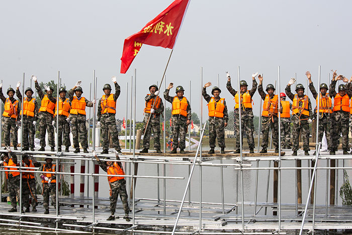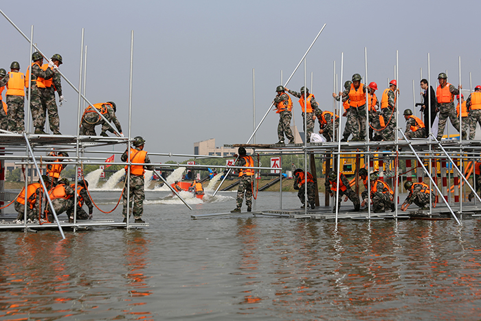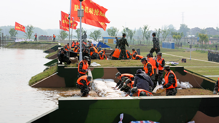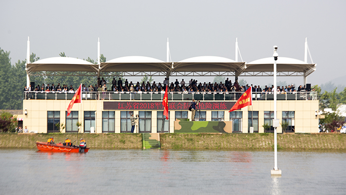 427日,来自江苏省军区、武警江苏省总队、省市20多支专业防汛抢险队伍以及社会化抢险队伍共400余名参训人员集结在江苏省防汛抢险训练场,开展了一场汛前军地联合防汛抢险实战演练。省防指指挥、副省长缪瑞林,省军区副司令员周志斌,省政府办公厅主任谢润盛,省防指副指挥、省水利厅厅长陈杰到现场观摩演练。省防指秘书长、省水利厅副厅长张劲松主持演练汇报会。