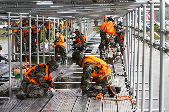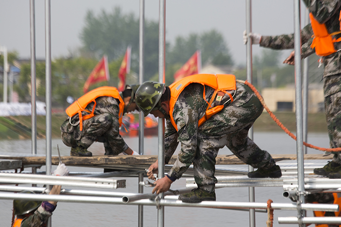 2018427日上午840分,随着江苏省2018军地联合防汛抢险演练指挥部一声令下,公司参加实战演练的突击队30名架子工立即奔赴现场,迅速进行脚手架搭建作业,参加钢木土石组合坝封堵决口演练。