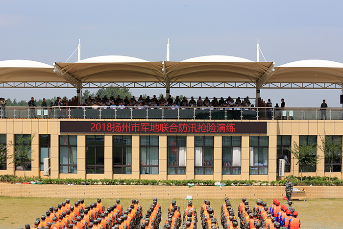 6月25日是扬州入梅的第一天。为做好今年的防汛工作,进一步检验军地联合抢险工作机制和抢险队伍的实战能力,25日上午,由扬州市防汛防旱指挥部、扬州军分区联合组织的模拟抗洪抢险行动在江苏省防汛抢险训练场展开。我公司作为中国人民解放军江苏省扬州军分区特邀单位,组织防汛抢险突击队参加了演练。市委常委、扬州军分区司令员郦斌、副市长丁一等市领导、各县市区负责同志、市各级防汛部门负责同志观摩演练。我公司董事长时爱祥现场指挥并出席观摩演练大会。