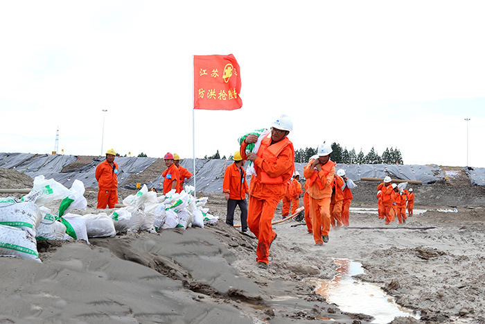 演练场景模拟汛期新孟河延伸拓浚界牌水利枢纽工程施工场区突遭强降雨天气,造成施工场区集水过快,闸塘基坑出现积水,降水井和五七灌排泵站排水能力不足,危及闸塘基坑安全。防汛领导小组立即启动防汛应急预案,通知抢险队前往救援。