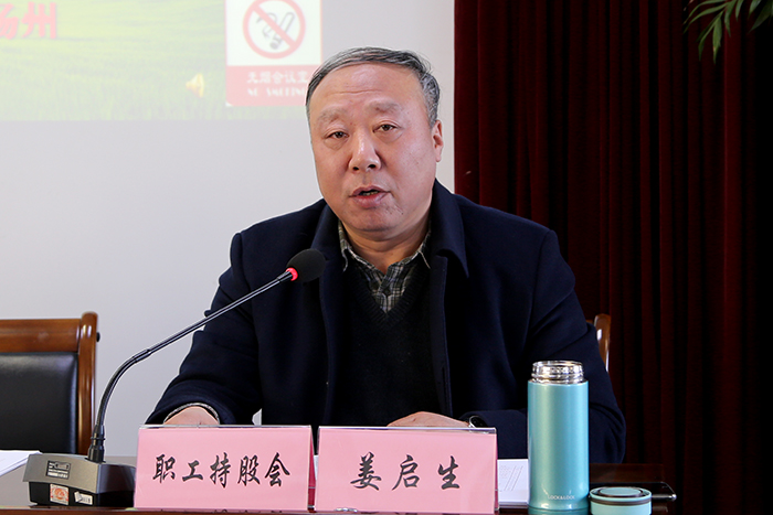 姜启生作了以“坚持以职工为中心,助力公司高质量发展”为主题的工会工作报告。2018年,公司工会以习近平新时代中国特色社会主义思想为指引,全面贯彻落实党的十九大和中国工会十七大精神,忠诚履职,积极作为,以高度的责任感和使命感团结动员广大职工在公司发展新征程中发挥主力军作用,各项工作取得了明显成效,得到了公司广大职工和省水利厅工会、市总工会的高度肯定。2019年,工会将以推动公司高质量发展为中心,突出抓好职工思想政治工作,坚持不懈服务发展、服务企业、服务职工,不断增强职工获得感、幸福感、安全感,以优异成绩向新中国成立70周年献礼。