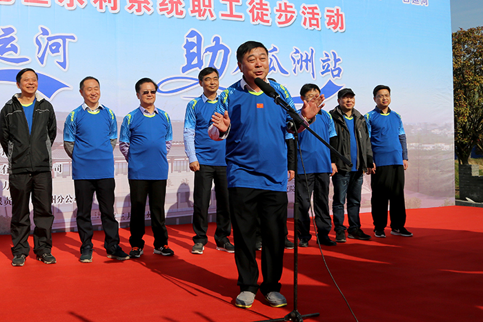 “让我们用徒步古运河的方式为宣传水利方针政策、宣传水环境保护理念而行动,一起向着冲刺瓜洲泵站建设关键阶段目标而出发……”,随着扬州水利局党组书记、局长康盛君鸣枪发令,扬州地区水利系统徒步大军400多人浩浩荡荡的从位于古运河畔的王小河泵站出发,沿着古运河东堤向南行进,直行抵达终点处瓜洲泵站项目部。
