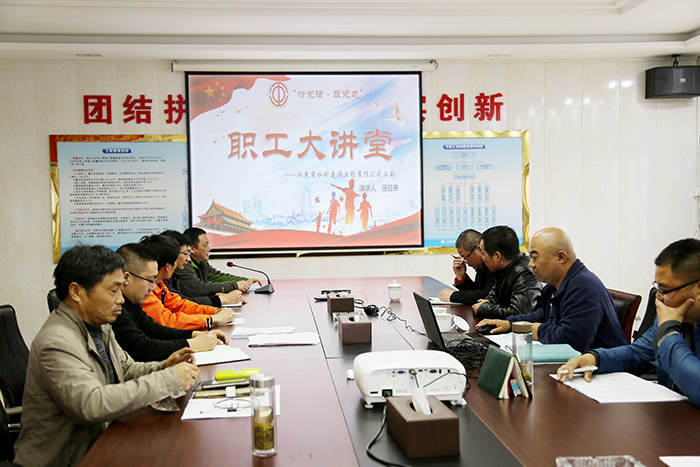 近日,在各分(子)公司相继召开双代会之际,公司工会邀请了翟高明、汤应来两位劳模分别在重点工程项目部开展了两场听党话、跟党走职工大讲堂活动,近八十名员工现场听课。