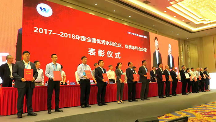 6月2日,在上海召开的2019年水利企业高峰论坛上,对“2017-2018年度全国优秀水利企业、优秀水利企业家”进行了表彰,我公司和水机公司双双获评“全国优秀水利企业”,时爱祥同志被评为“优秀水利企业家”。