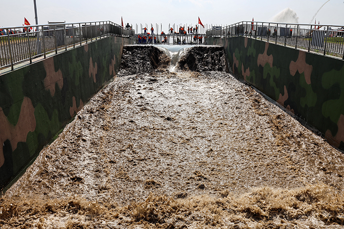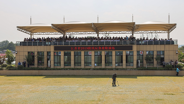 此次演练结合江苏省防汛抢险实际,现场模拟南京长江河段水位持续上涨、长江堤防出现多处险情、大量群众被困情况下的应急抢险救援场景。演练涵盖应急预案演练、专业科目演练、应急救援救灾演练、抢险新技术、新装备展示等四大类34个科目内容。