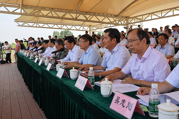 省政府副省长、省防指常务副指挥费高云讲话,省应急管理厅厅长、省防指副指挥陈忠伟动员讲话,省水利厅厅长、省防指副指挥陈杰主持。