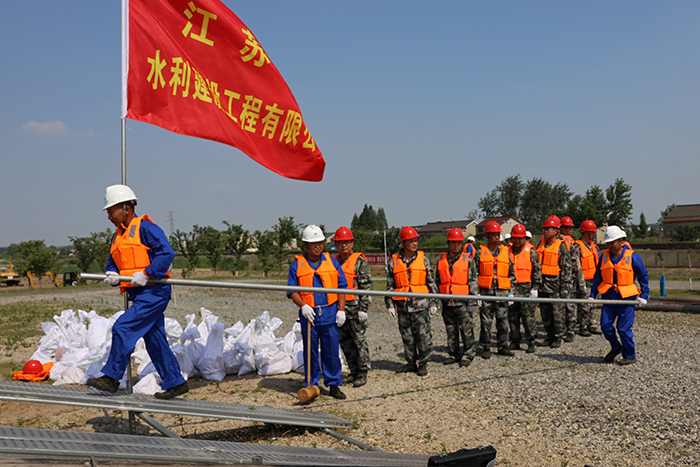 我公司是江苏专业防汛抢险队伍,2017年,与省防办签订了防汛抢险突击队保障协议。近年来,先后参加了南京、扬州、常州等地的防汛抢险,有着较为丰富的防汛抢险工作经验。2018年我公司先后参加了江苏省和扬州市军地联合防汛抢险演练,组织技术工人和大型机械装备投入演练,提高了专业化水平,发挥了专业防汛抢险队伍的有力作用,展现了一个有高度社会责任感的企业形象。