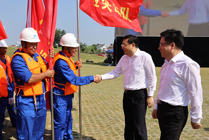 610日~14日,省防汛防旱指挥部在南京六合举行防汛应急抢险演练。14日下午,省防汛防旱指挥部常务副指挥长、省政府副省长费高云现场观摩演练并讲话。我公司防汛抢险突击队全程参加训练和演练,并以娴熟的专业技能顺利完成了演练科目,提高了素质,展现了形象。公司领导时爱祥、顾明如、顾永明、汤应来应邀观摩了14日的演练活动。