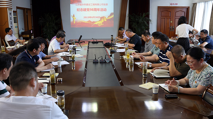6月30日下午,公司党委围绕“不忘初心、牢记使命”主题教育开展了纪念建党98周年活动。公司领导班子成员、党委委员、党委学习中心组成员、各单位党政负责人、公司机关直属党支部书记、各部门主要负责人以及2018年新发展的党员和接受表彰的优秀党员等50余人参加了活动。活动由公司党委副书记姜启生主持。