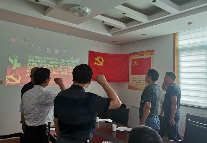 党总支副书记万春耕带领新党员和与会全体党员重温了入党誓词,通过重忆入党经历、分享成长经历、重问入党初心,党员同志进一步坚定了自己的初心和使命。