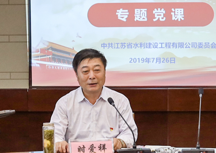 时爱祥的党课主题是“不忘初心、牢记使命,顾全大局,一条心、一股劲,提升公司竞争力,提升员工幸福感”。他指出,中国共产党人的初心和使命,是为中国人民谋幸福,为中华民族谋复兴。省水建公司的初心和使命是为全体职工谋幸福,为公司谋求竞争力的提升,为水利工程谋求高质量施工。公司全体党员干部要把“不忘初心、牢记使命”主题教育作为终身课题,统领公司全局工作,以此激励全体员工在新时代有新担当和新作为。
