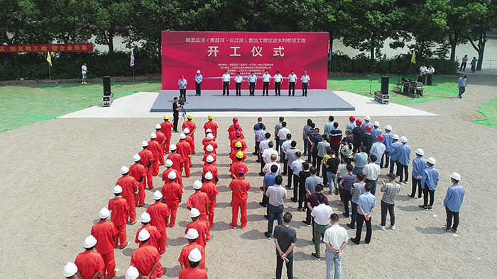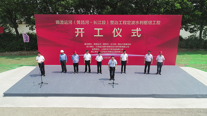 8月16日上午,锡澄运河(黄昌河—长江段)整治工程定波水利枢纽工程举行开工仪式。无锡市委常委、江阴市委书记陈金虎宣布工程开工,市领导孙小虎、徐冬青、费平、郁秋皓,市水利局、自然资源和规划局、住建局、交通运输局、澄江街道等有关部门和镇街,以及工程项目设计、施工、监理单位等参加开工仪式。我公司董事长时爱祥在开工仪式上发言,表示将努力把定波枢纽打造成精品工程、生态工程、放心工程,成为江阴市一道最靓丽的风景线。