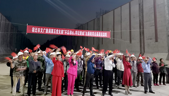 10月8日,宿迁市文化广电和旅游局到我公司三分公司承建的宿迁市陆运河船闸工地开展了慰问演出活动,向国庆假日期间坚守在工地的广大职工献上了一场精彩纷呈的文化盛宴。陆运河工程建设处、监理处、项目部80余人在工程现场观看了演出。