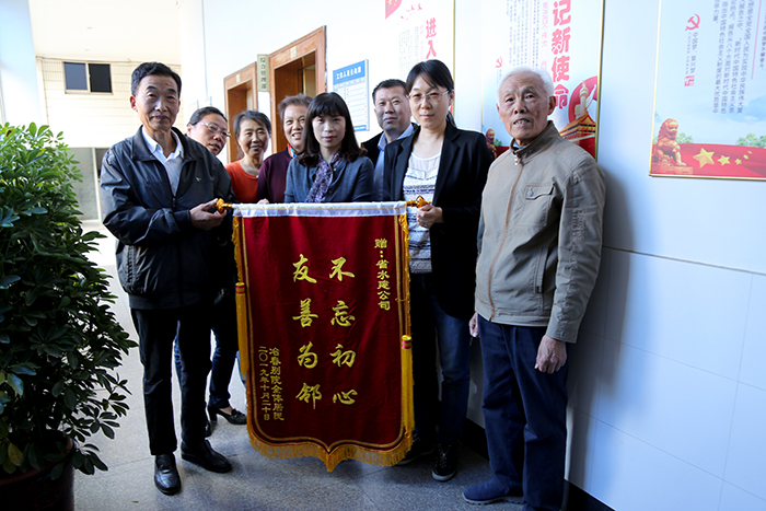 公司本部大院在地方社区已有近二十年,近年来,大院北面建起了“冶春别院”居民楼,紧挨着公司院内原先生长的一排水杉树。后来入住的居民感到水杉枝叶对其光照带来了影响,多次要求将水杉树全部处理掉。公司综合管理部考虑到既要保存树木,为扬城绿化城市这块金字招牌作贡献,又要处理好邻里关系,尽可能地做到邻里和谐,彼此相互理解支持。经多方沟通,公司组织专业人员对水杉树枝进行了修剪,较好地解决了居民阳光遮挡的困扰。冶春别院居民对此十分满意,夸赞公司友善为邻、为民办实事,为了表达他们感谢之情,特为公司送上一面锦旗:“不忘初心,友善为邻”。