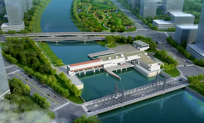 由二分公司承建的锡澄运河北排扩大工程定波枢纽是此次集中开工项目的其中一项。定波水利枢纽是锡澄运河(黄昌河~长江段)整治工程的一部分,位于江阴市锡澄运河与长江交汇口处,主要包括总净宽48m 节制闸、120m3/s 双向泵站及附属引河等工程,总投资43485.28 万元。土建部分由我公司于今年7月份中标,金额16381万元,钢结构部分由我公司水机公司中标,金额1570万元。