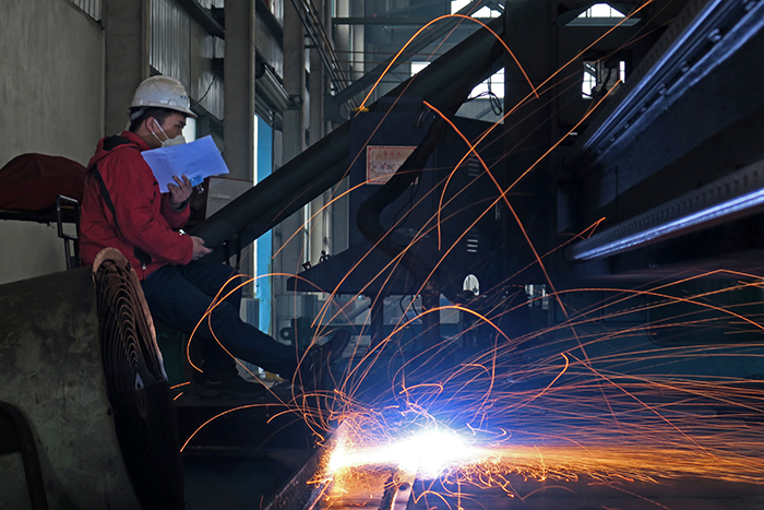 钟卫华介绍,目前每天上班的员工有200多人,跟高峰期相比,产能大约在八成左右。当前最大的问题是上下游链条不畅,采购的材料、零配件进不来,制作好的钢结构出不去,只好堆积在厂区内。不过他表示,有信心做到疫情防控和生产制造两不误,克服困难开足马力稳产,确保完成汛前任务,待到春暖花开时,正是为水利工程安全度汛立功日。