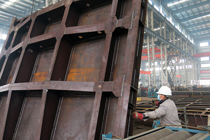 假期可以延长,而2020年汛期不会因为疫情防控而延时。确保按时完成水利工程汛期任务,是水利人在打赢疫情防控战的同时必须打赢的另一场战役。水机公司承担了多项重点水利工程的钢结构生产任务,这里面有国家172项节水供水重大水利工程新孟河界牌水利枢纽的拦污栅、清污机,有无锡重点水利工程定波水利枢纽的钢闸门,有引江济淮工程东淝船闸的闸门,以及刘老涧、陆泾河等20多项水利工程的钢结构制作,都必须在汛期完成厂内制作和现场安装任务,时间紧、任务重。