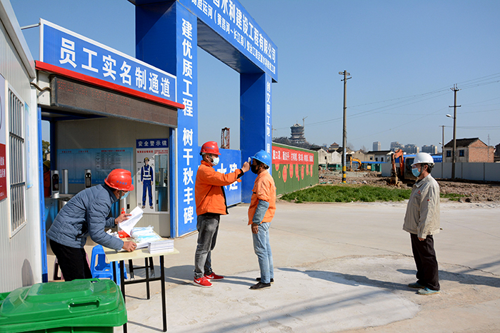 防控机制到位。项目部制定疫情防控工作方案,成立疫情防控工作领导小组,统筹部署疫情防控期间各项工作安排。21日上午9时,江阴市纪委副书记陆欣带队到工地对复工及防疫情况进行督导检查;上午930分,所有参建单位负责人在项目部大会议室学习防疫知识、会商复工进度计划,明确施工任务以及疫情防控重点;下午4时,项目部召开疫情防控、节后复工安全生产会议,明确各科室日常防疫职责,保障防疫责任落实到位,确保防疫期间复工生产安全有序。