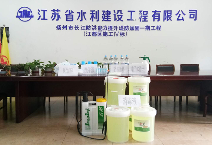 项目部充分利用各种渠道储备防疫物资,储备了84消毒液120kg、医用口罩1000个,测温枪2把,洗手液、酒精和喷壶若干,以满足复工要求。在项目实施过程中,每日进行消耗统计,掌握动态,保证耗用10天以上的储量。