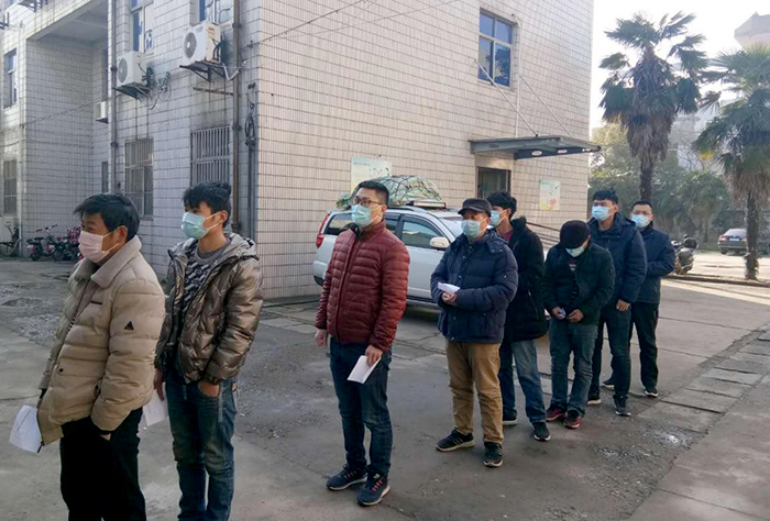 为积极防控疫情,确保复工人员健康,项目部派专车点对点接外市返扬复工人员到工地,避免复工人员乘坐公共交通时产生交叉感染。项目部与复工人员签订疫情防控承诺书,对复工人员进行登记造册,详细记录姓名、住址、出行等情况。同时,组织复工人员进行健康体检(胸透、血常规检测)、日常消毒、测量体温、进、出扫码登记。