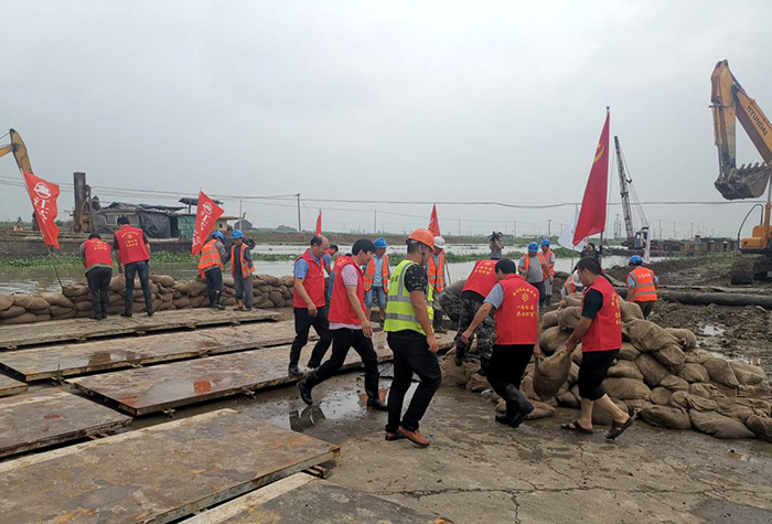 目前,公司已成立党员抢险专家服务队、党员抢险志愿服务队,各分(子)公司陆续成立党员抢险志愿服务小分队。公司在急难险重前有担当,党旗飘扬在抢险现场。此次防汛抢险是太滆运河项目部与区水利局、地方政府一次默契的配合,项目部加强与地方政府沟通、联动,在做好抗洪抢险的同时,展现了公司良好的社会责任感。