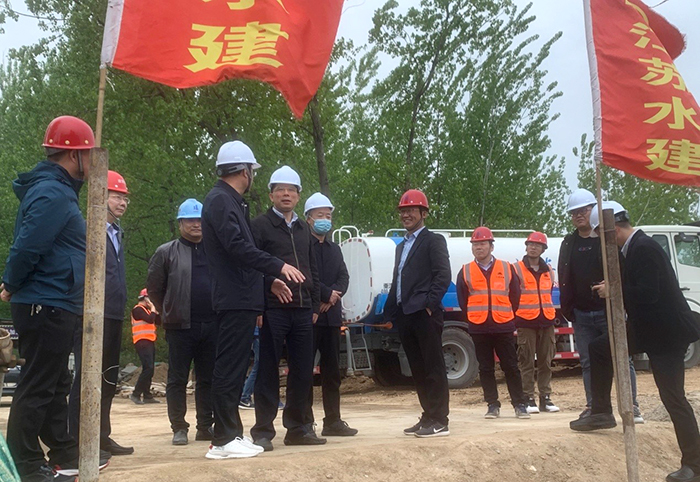 4月21日,省水利工程建设局党组书记、局长蔡勇视察公司基础工程分公司承建的宝应县2019年灾后应急治理工程,扬州市水利局副局长张东培、扬州市水利工程建设中心主任刘金生等陪同视察。