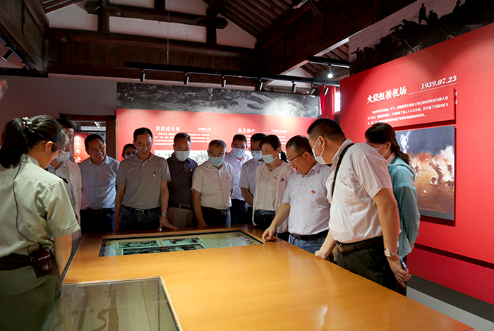 在展馆工作人员的带领和讲解下,党员干部们参观了郭村新四军抗日保卫战纪念馆,观看了纪念馆内的史料图文和部分实物、声光短片,回顾了郭村保卫战的英勇战斗历史。