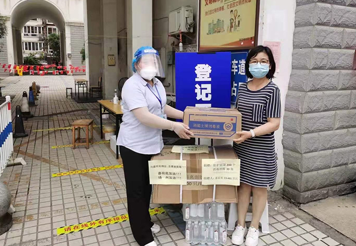 810日,公司工会和综合管理部组织筹集了一批防暑降温用品和防疫物资,捐赠给驻地社区工作者和辛勤值守的卡口志愿者。公司并提供了大门口场地,为核酸检测进小区提供方便。
