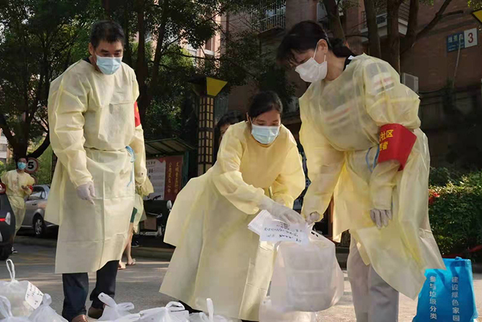 在防控形势的严峻时刻,公司涌现出一大批志愿者冲锋在疫情防控最前线。他们中有党员干部,也有普通员工,大家在本居住地就地转变为志愿者,主动参与到疫情防控志愿服务活动中。他们有的在工地值守的同时,为社区搭建核酸检测点,积极组队参加核酸检测队伍秩序维护;有的在各自片区担任楼栋长、信息采集员;有的从事社区网格志愿服务,组建物资配送“骑行队”;有的从事楼栋消毒、卡口值勤等脏、苦、累活……他们用真情和汗水,从黑夜到黎明,顶烈日、冒大雨,辛勤奋战在抗疫第一线,用行动传递爱与温暖,用爱心与奉献筑起了一道道防疫长城