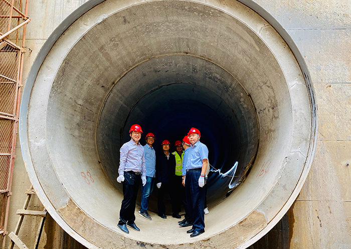 沈亚健深入黄山河地涵顶管工作井,实地视察了4米大直径曲线顶管作业现场,详细了解工程建设进展情况。他对1#线413米顶管成功贯通表示祝贺,对项目部能够优化施工方案、创新技术措施,确保工程施工安全、文明、有序推进表示肯定,并对项目一线职工迎难而上、攻坚克难展现出的新时代产业工人的劳动精神表示赞赏。