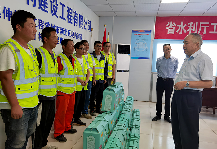 沈亚健为一线施工人员发放了爱心慰问品,并叮嘱他们要劳逸结合,确保安全生产要求项目部全体参建员工发扬水利精神,充分认识到引江治太新孟河延伸拓浚工程的重要性,团结一心,艰苦奋斗,为建设强富美高新江苏添砖加瓦。